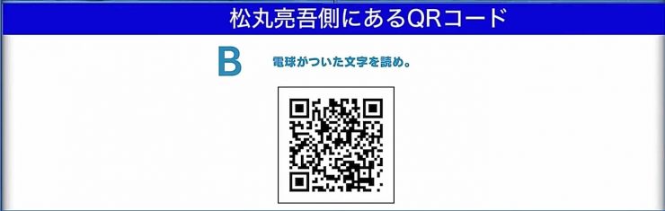 松丸亮吾手上的QR碼所看到的影片中,燈泡有亮的文字是こ、も、だ、の、こ、え、さ、だ。