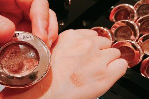 擦在手上的顏色是這樣的感覺。質地比較像慕絲,輕輕壓的時候感覺鬆鬆軟軟、不會黏黏的,最重要的是顯色效果很好。櫃姐表示不同顏色會有不一樣的顯色程度,所以要根據使用的場合來選顏色,像是參加party的誇張妝容跟上班時的辦公室妝容,用色及顏色深淺就會不一樣。前面有幫大家分類了,請參考看看喔!
