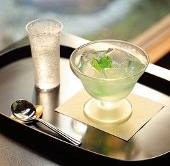 「栖園」最有名的是寒天甜點「琥珀流し」,是老闆親自創作的一款甜品,這道甜點每年限定在4月至12月限期供應,隨月份不同,甜點的材料也會有變化,例如在櫻花盛開的4月,會吃到用櫻花花瓣作材料的「琥珀流し」,6月則有梅酒、7月有薄荷味等。