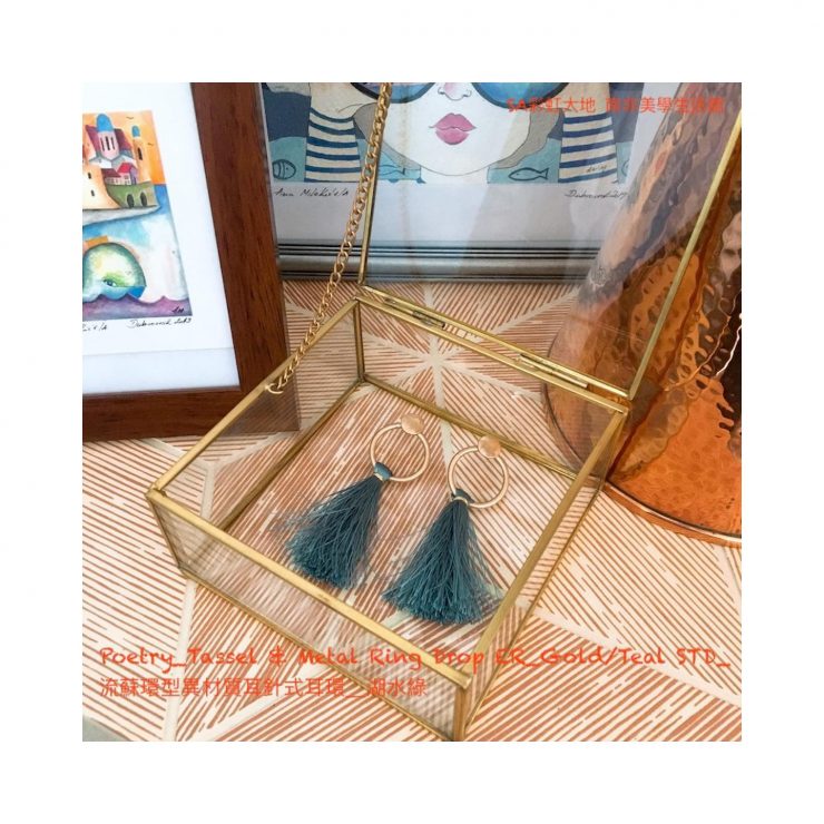 橘色與水藍色撞色系流蘇呼應了絲巾上的設計,不會太浮誇又不會太簡約,是恰到好處的設計。