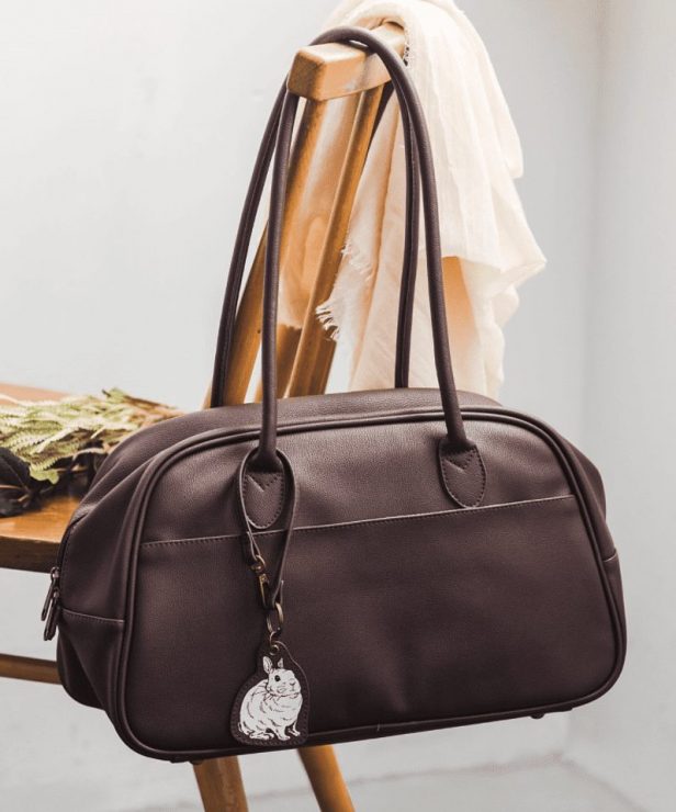 深色的日系包款,搭背可愛的日系插畫家白色的兔子。