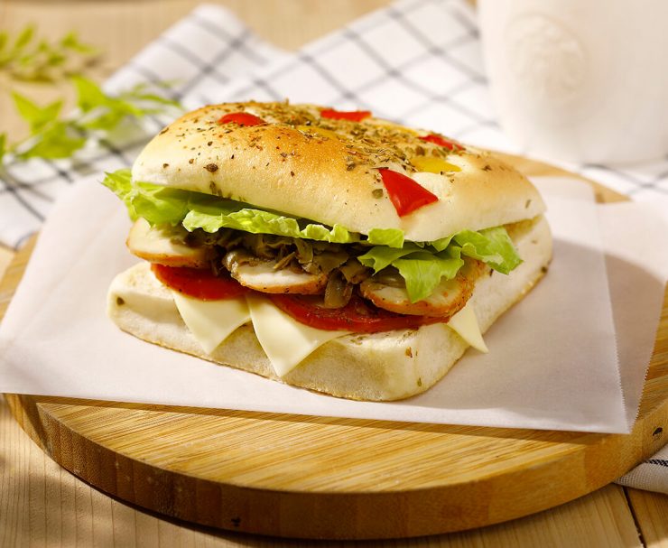 炎熱夏季,星巴克本次也推出冷食熱食皆宜的爽口輕食「鮮蔬烤雞佛卡夏」,抹上奶油乳酪醬的佛卡夏堡體,夾入特調的烤雞胸肉片,搭配在地水耕萵苣、充滿甜香的烘烤彩椒及番茄片,十分清爽。