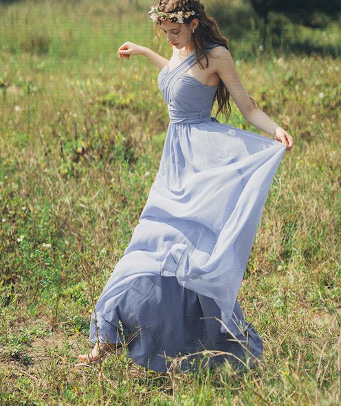 命定花嫁多穿長禮服洋裝,共有黑、藍、粉三色,可拆式肩帶有多種變化穿搭 (NT$2,280)