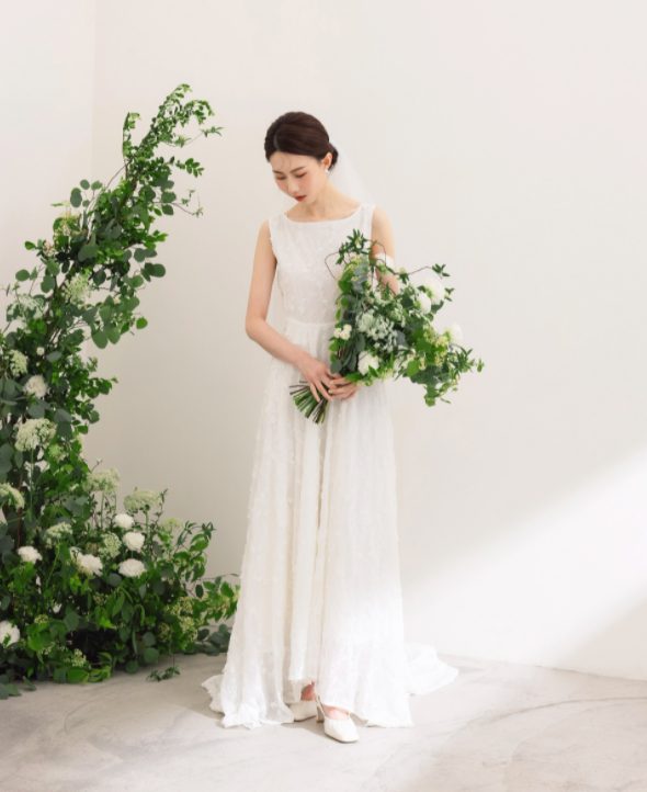 立體繡花小拖擺輕婚紗,日韓清新風格給人舒服回歸最自然的狀態 (NT$2,190)