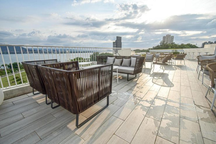 以景色聞名的將捷金鬱金香酒店,每房都能看到淡水河景或淡水的綠意森森,且大門口就是著名的「葛林之森空中花園」,透過建築高度打造彷彿無邊界綠地入河的遼闊景色,讓每位見過的旅客都流連忘返!