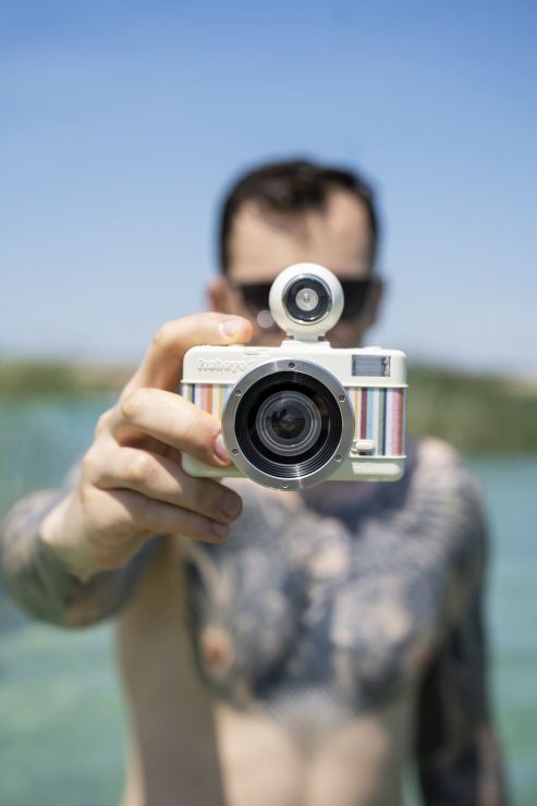 一起發揮你的創造力,輕易地回捲並製造出獨特的 MX 重曝效果。它使用最普遍的 35mm 底片拍攝,更附有 Fritz the Blitz 閃光燈,不分晝夜點亮你的照片!