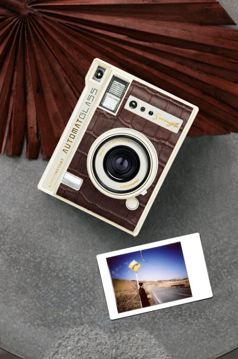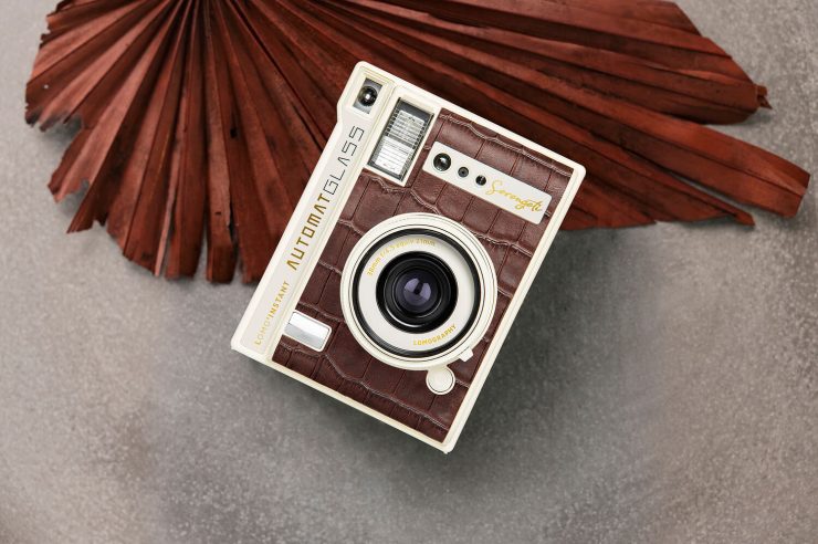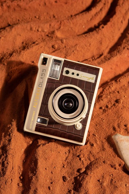 Lomo’Instant Automat Glass 廣角玻璃鏡頭拍立得相機-Serengeti 特別版的設計靈感源自非洲塞倫蓋蒂國家公園(Serengeti National Park)廣闊的平原和不同種類的動植物,而機身展現復古棕色皮革設計和金色壓紋細節,別具特色!
