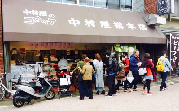 這裡是創業58年,非常受當地人以及觀光客歡迎的『中村屋總本店』的可樂餅。