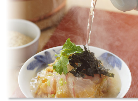 鯛魚薄片搭配特製芝麻醬的茶泡飯。