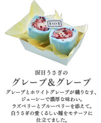 「哭哭臉兔子」用可麗餅與白色可麗餅交纏而成,再添加覆盆子與藍莓。好像能看到兔子楚楚可憐、淚眼汪汪的神情阿!