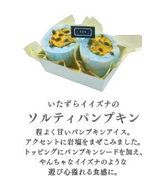 「頑皮小伶鼬」說到伶鼬這個小動物實在是超級可愛!以口味甘醇的南瓜加上岩鹽來點綴,略為衝突的微妙口感象徵了伶鼬的調皮玩心。